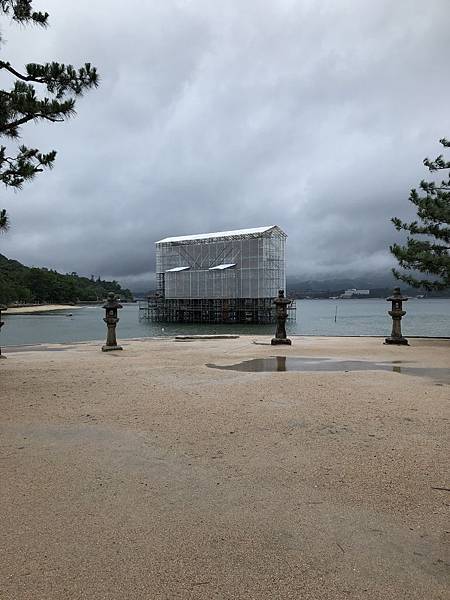 被鋼架完全蓋住的鳥居,只好安慰自己剛好能在這麼''特別''的時候來到嚴島,讓自己有再來第二次的理由