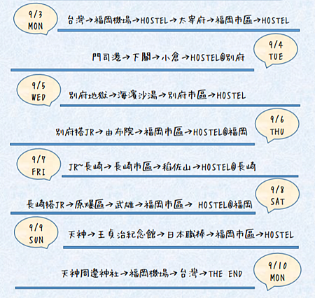 會這樣安排主要是因為第七天有職棒比賽,為了配合所以把JR PASS移到第2~6天使用。大家要特別注意,JR 在九州是獨立的公司,名叫JR 北九州。