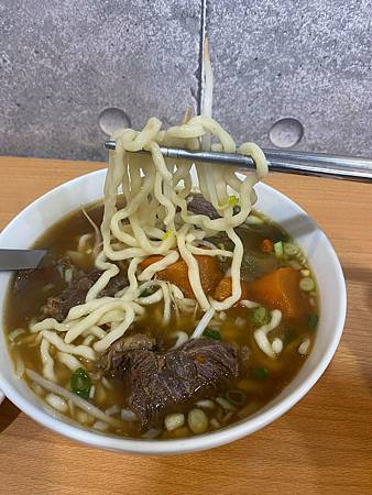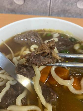 牛肉麵上桌啦!有沒有覺得分量十足呢?