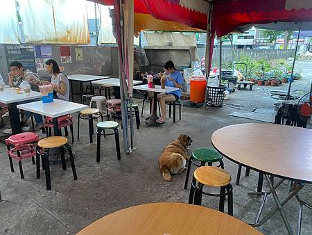 用餐區算是半戶外,不過旁邊也不是道路,比較沒有車輛行經廢氣的問題,上面則是有遮雨棚。