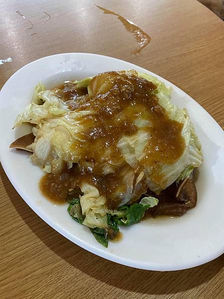 我點了一顆水煎包、高麗菜30元、豬耳朵和海帶,總共95元。