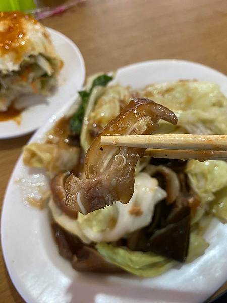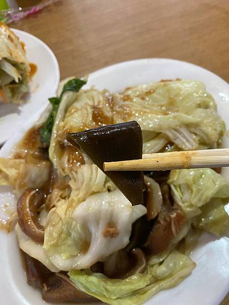 接著來吃一下滷味,印象中滷味的醬汁好像跟水煎包的醬汁一模一樣,是帶點蒜味的醬汁,但是不會辣。