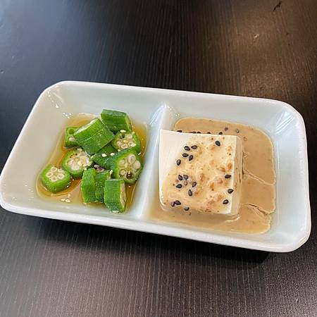 另外有再加點一個「芝麻豆腐+和風秋葵」,共235元。